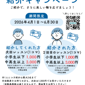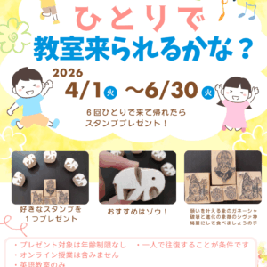 CHEMO独自のイベント案内, お知らせ ひとりで教室来られるかな? キャンペーン(2026/4/1-2026/6/30) / 2026年3月27日 【ひとりで教室来られるかな? キャンペーン】教室に6回一人で来て帰… もっと読む